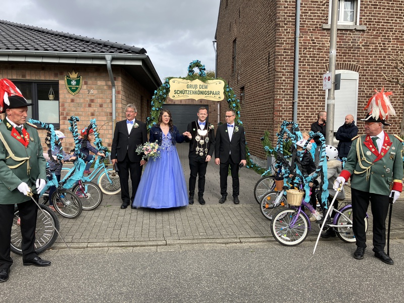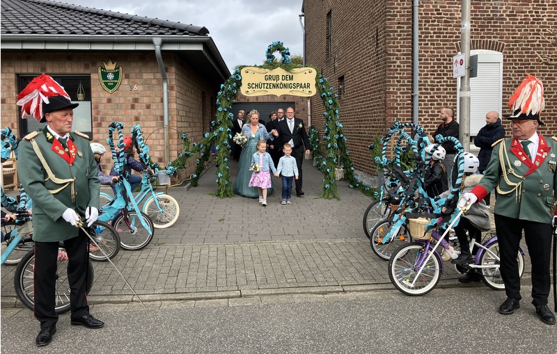 Waldfeucht und des Trommlerkorps aus Brüggelchen, unseren festlich geschmückten Fahrradkindern, den Vöchter Hennen sowie den Männern der St. Sebastianus Schützen.